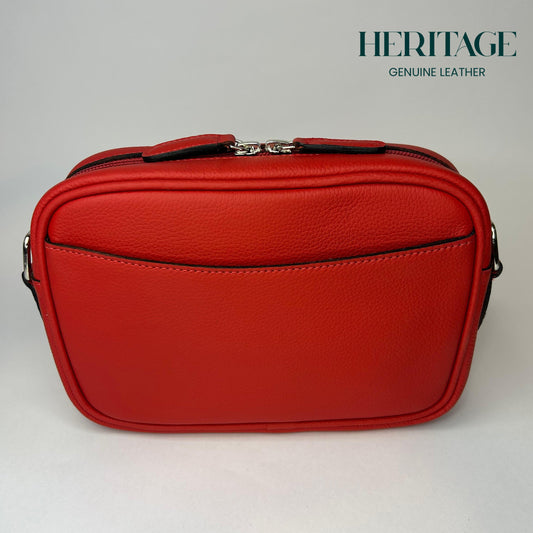 Camera Bag con Cinta en Cuero Granulado Rojo Heritage