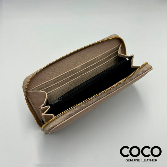 Billetera con Cierre para Dama en Cuero Granulado Arena COCO