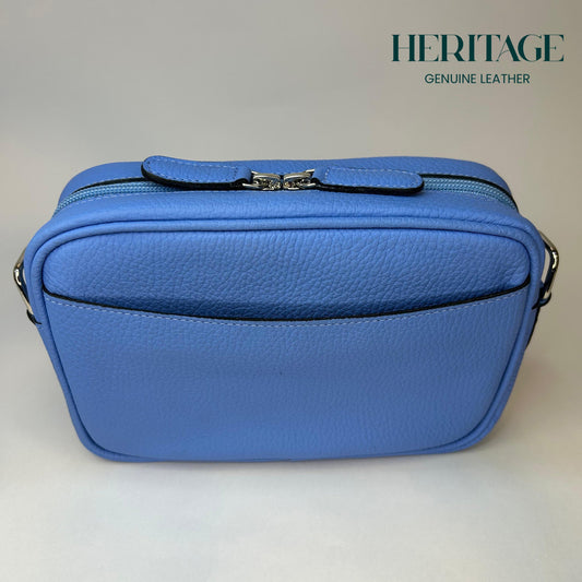 Camera Bag en Cuero Granulado Celeste Heritage