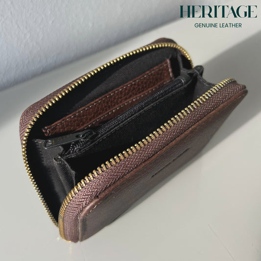 Billetera Pequeña con Cierre en Cuero Granulado Café Heritage