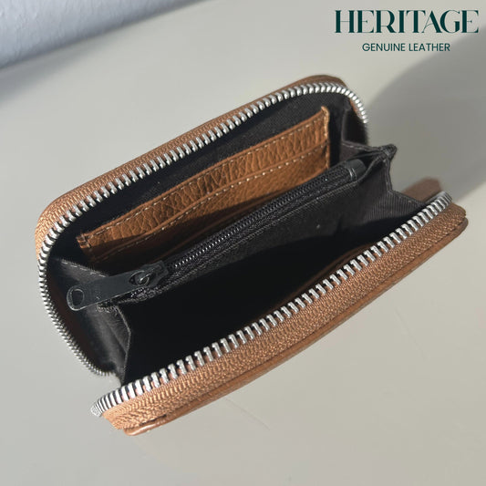 Billetera Pequeña con Cierre en Cuero Granulado Capuchino Heritage