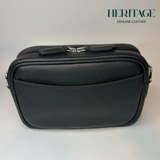 Camera Bag con Cinta en Cuero Granulado Negro Heritage