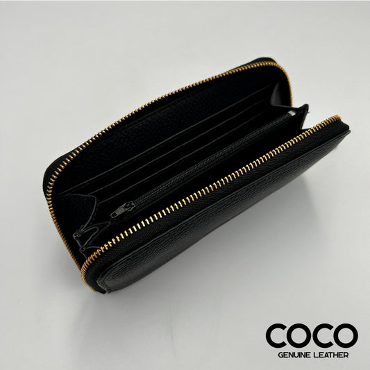 Billetera con Cierre para Dama en Cuero Granulado Negro COCO