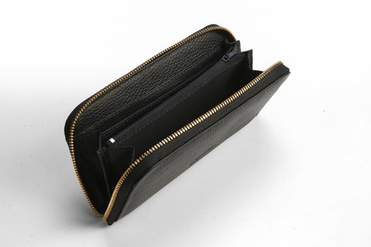 Billetera con Cierre para Dama en Cuero Granulado Negro COCO