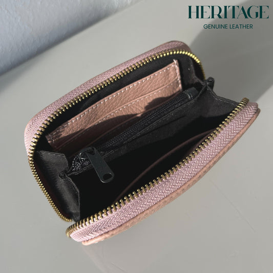 Billetera Pequeña con Cierre en Cuero Granulado Palo de Rosa Heritage