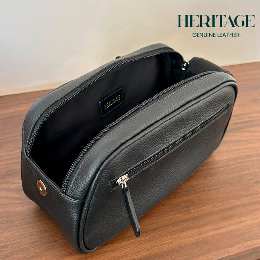 Neceser Dopp Kit Mediano Cuero Granulado Negro Heritage