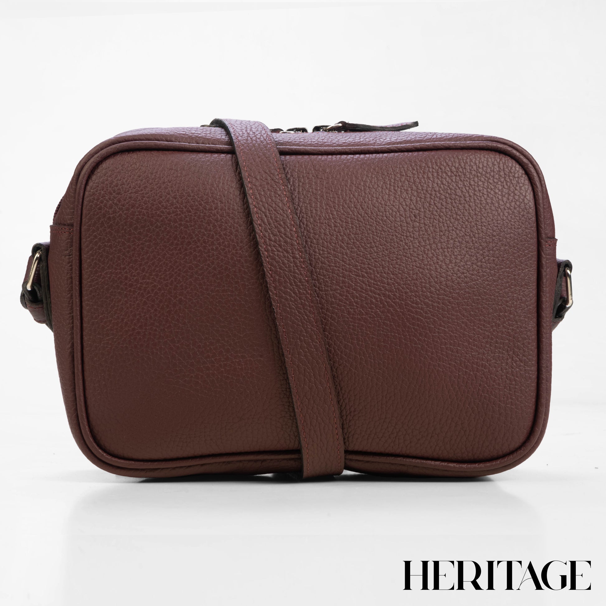 Camera Bag Mónaco Mediana en Cuero Granulado Borgoña Heritage
