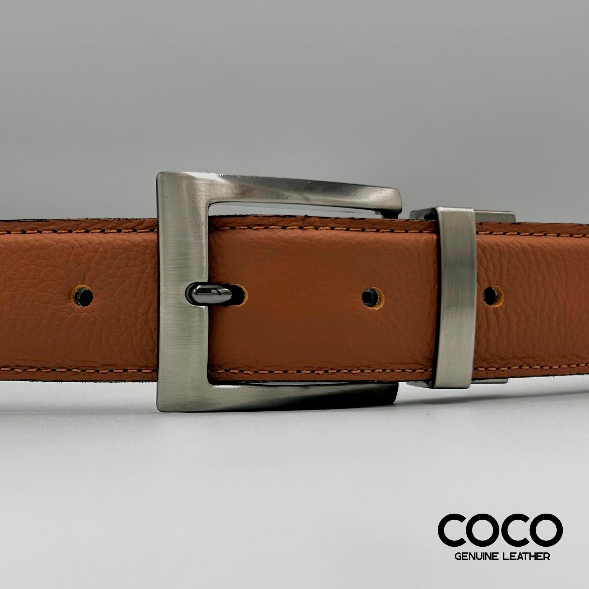 Cinturón Doble Cara de 35 mm Cuero Granulado Whiskey/Negro COCO