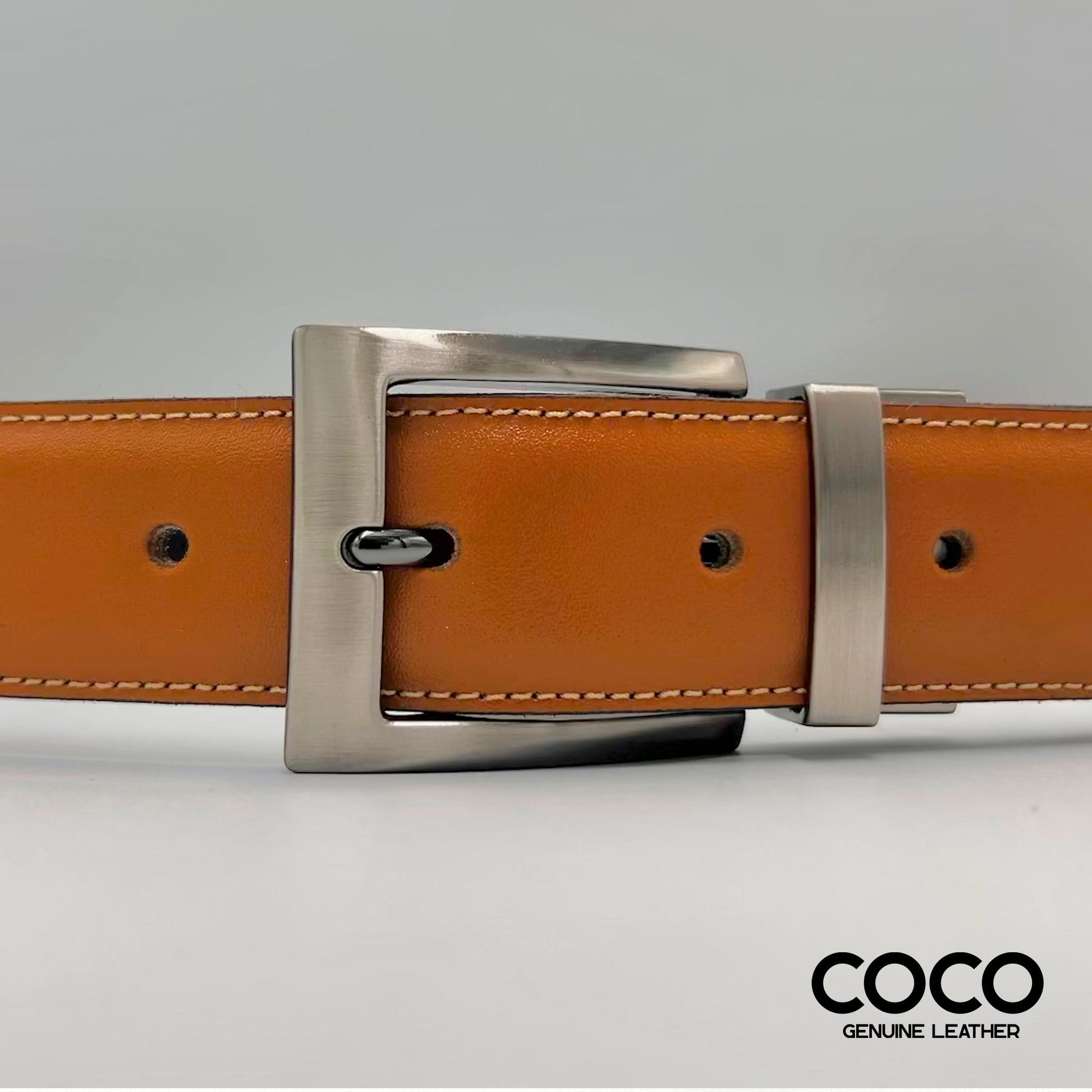 Nuestro cinturón de doble cara de 35mm en una combinacion de cuero mostaza y negro le da a tu atuendo un toque informal y elegante, ya sea que lo uses con tu atuendo de noche o de día. COCO utiliza sólo cuero de alta calidad, este cinturón se desgastara y adquirirá una hermosa pátina con el tiempo.