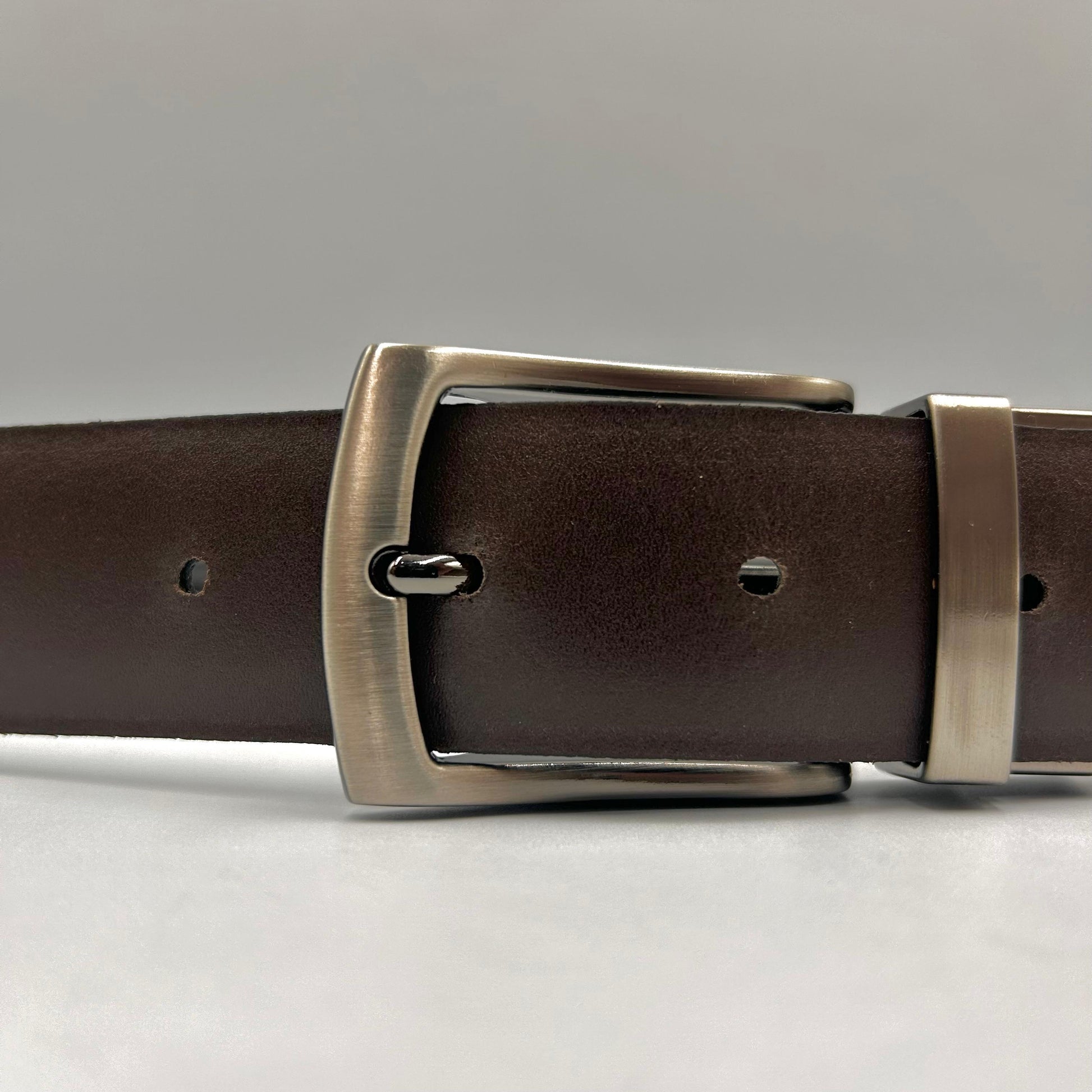 Nuestro cinturón de doble cara de 35mm en una combinacion de cuero café y negro le da a tu atuendo un toque informal y elegante, ya sea que lo uses con tu atuendo de noche o de día. COCO utiliza sólo cuero de alta calidad, este cinturón se desgastara y adquirirá una hermosa pátina con el tiempo.