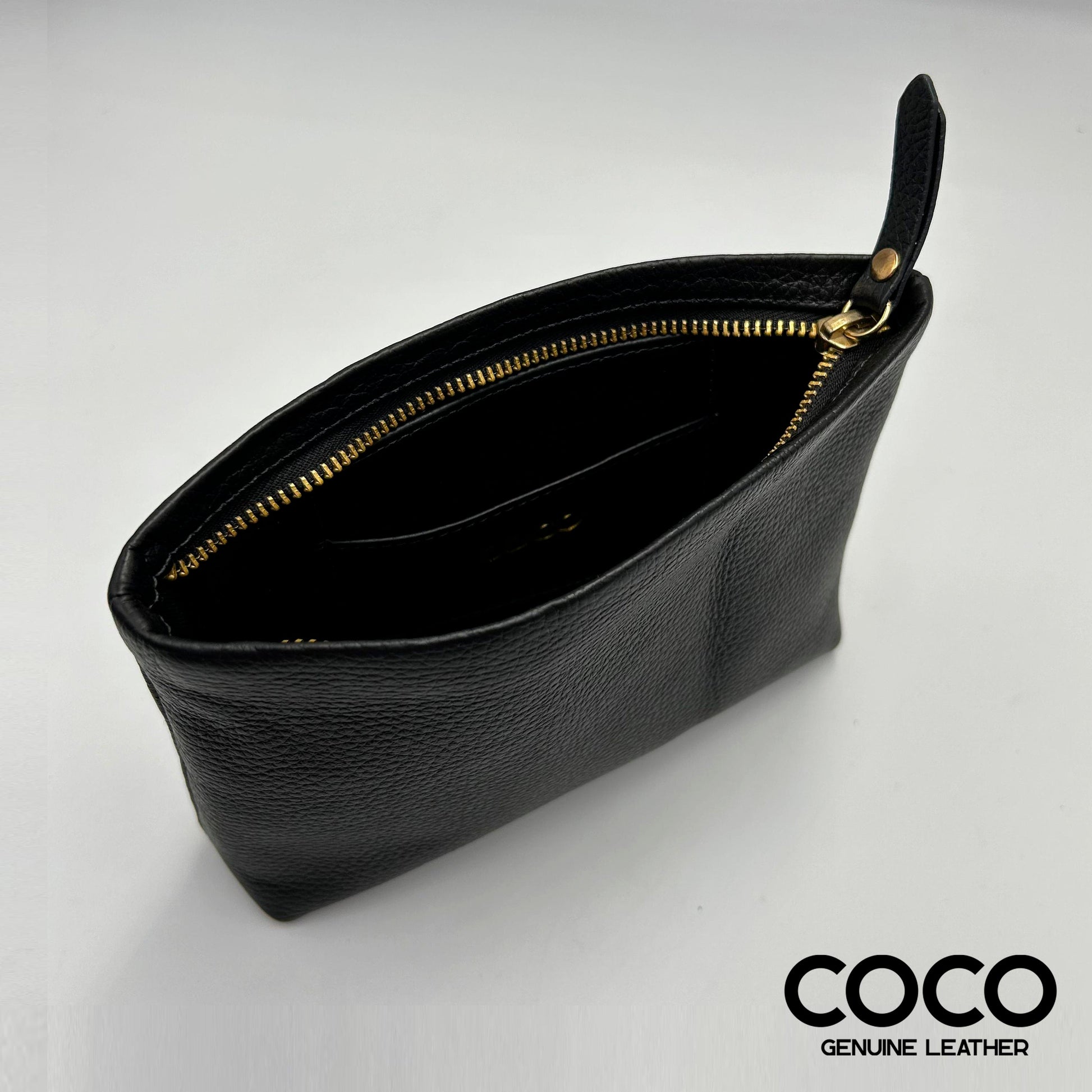 Pouch Cosmético Cuero Granulado Negro COCO