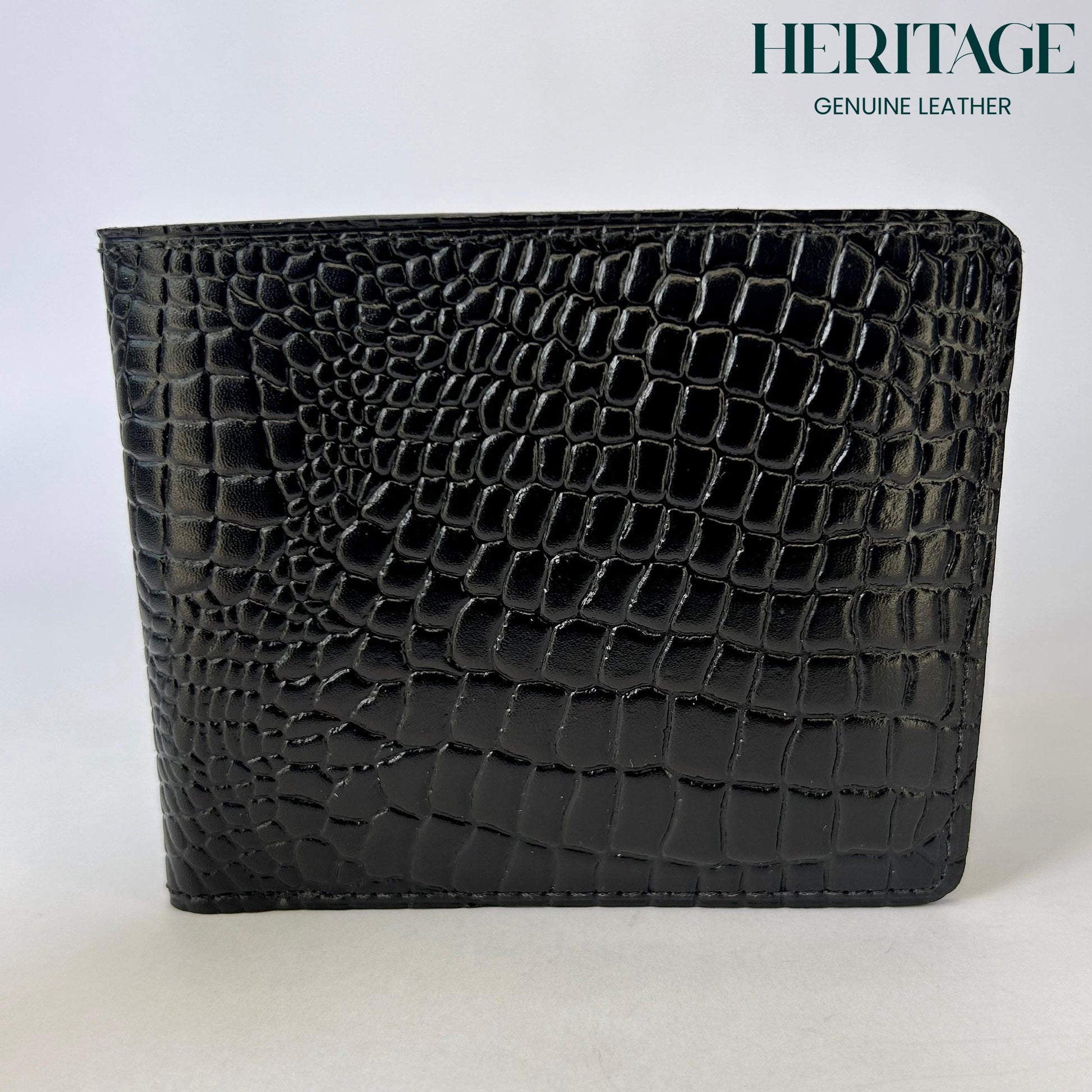 Billetera Bifold Cuero Croco Negro Heritage