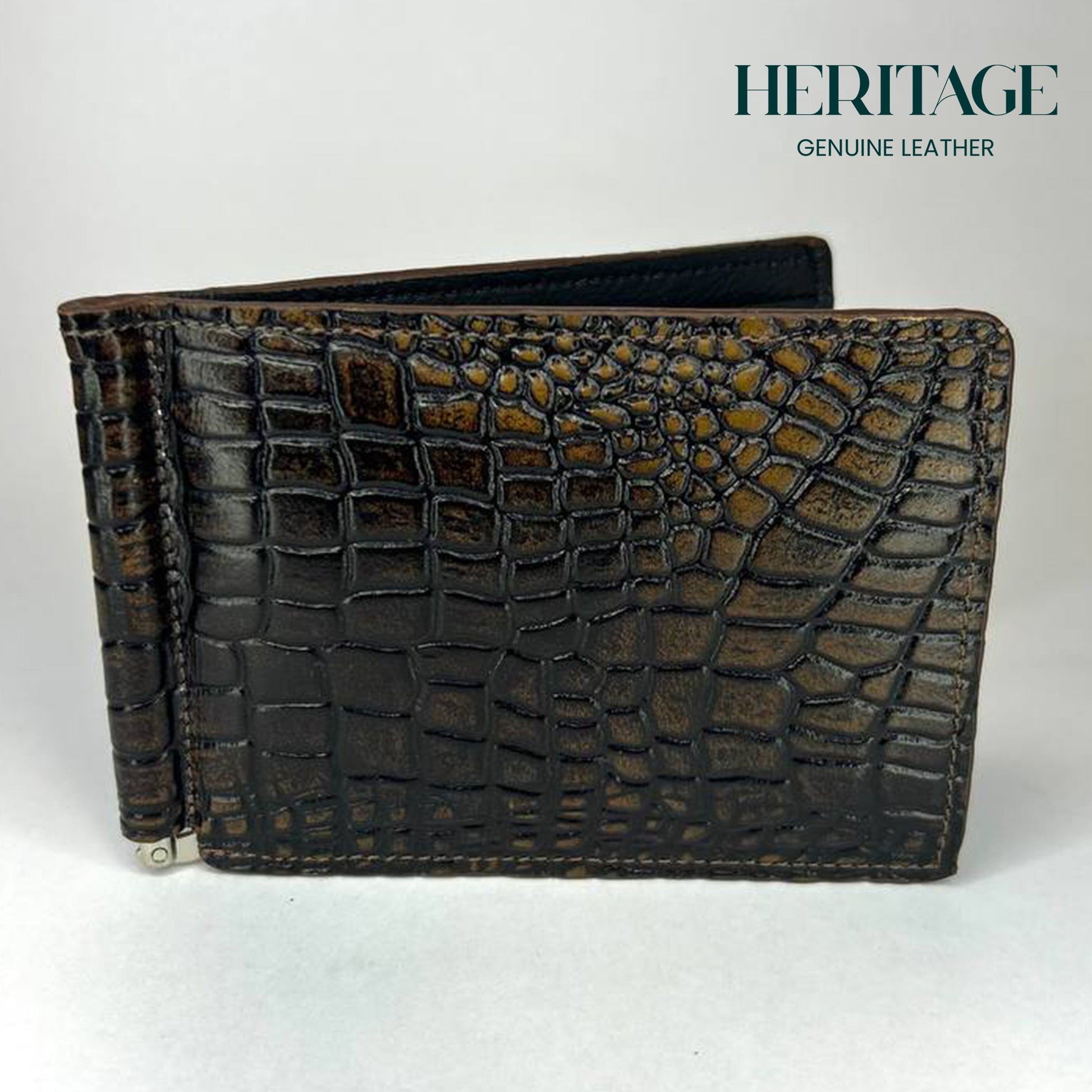 Billetera con Clip Cuero Croco Café Heritage