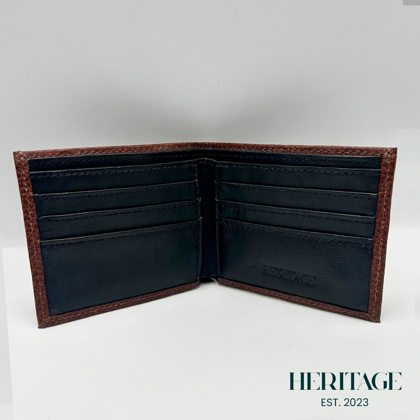 Interior de piel negra suave Seis bolsillos para tarjetas Dos ranuras laterales Dos bolsillos para billetes Dimensiones: Ancho 11 x Alto 9 cm Hecho en Bolivia