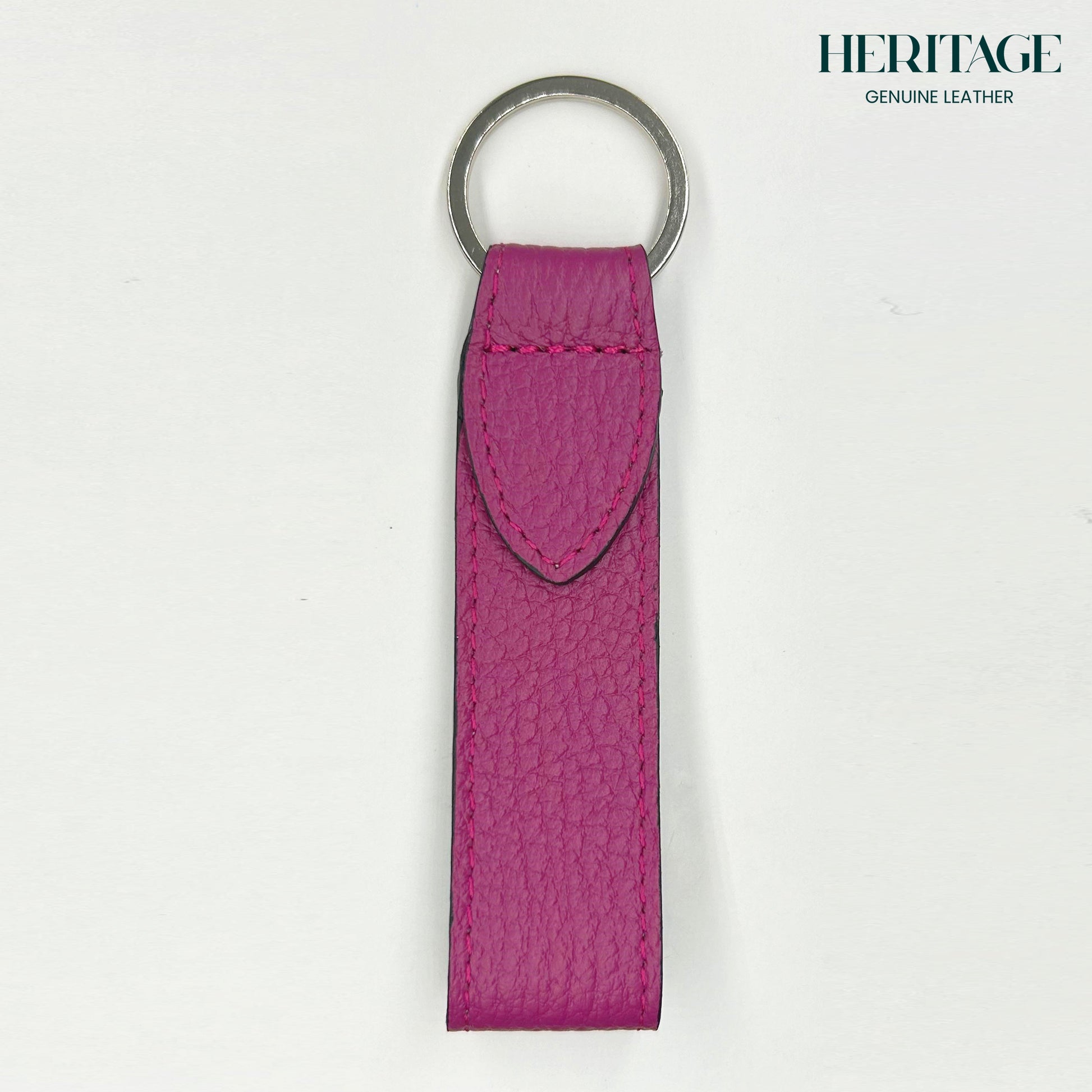 Llavero con Correa en Cuero Granulado Fucsia Heritage
