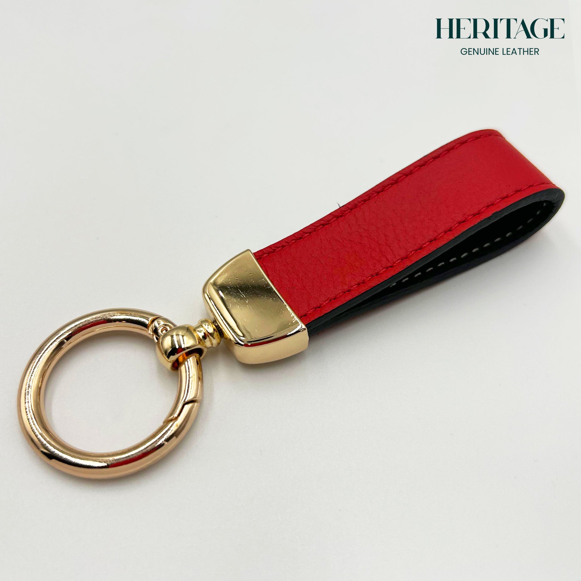 Llavero Metálico Dorado con Correa en Cuero Granulado Rojo Heritage