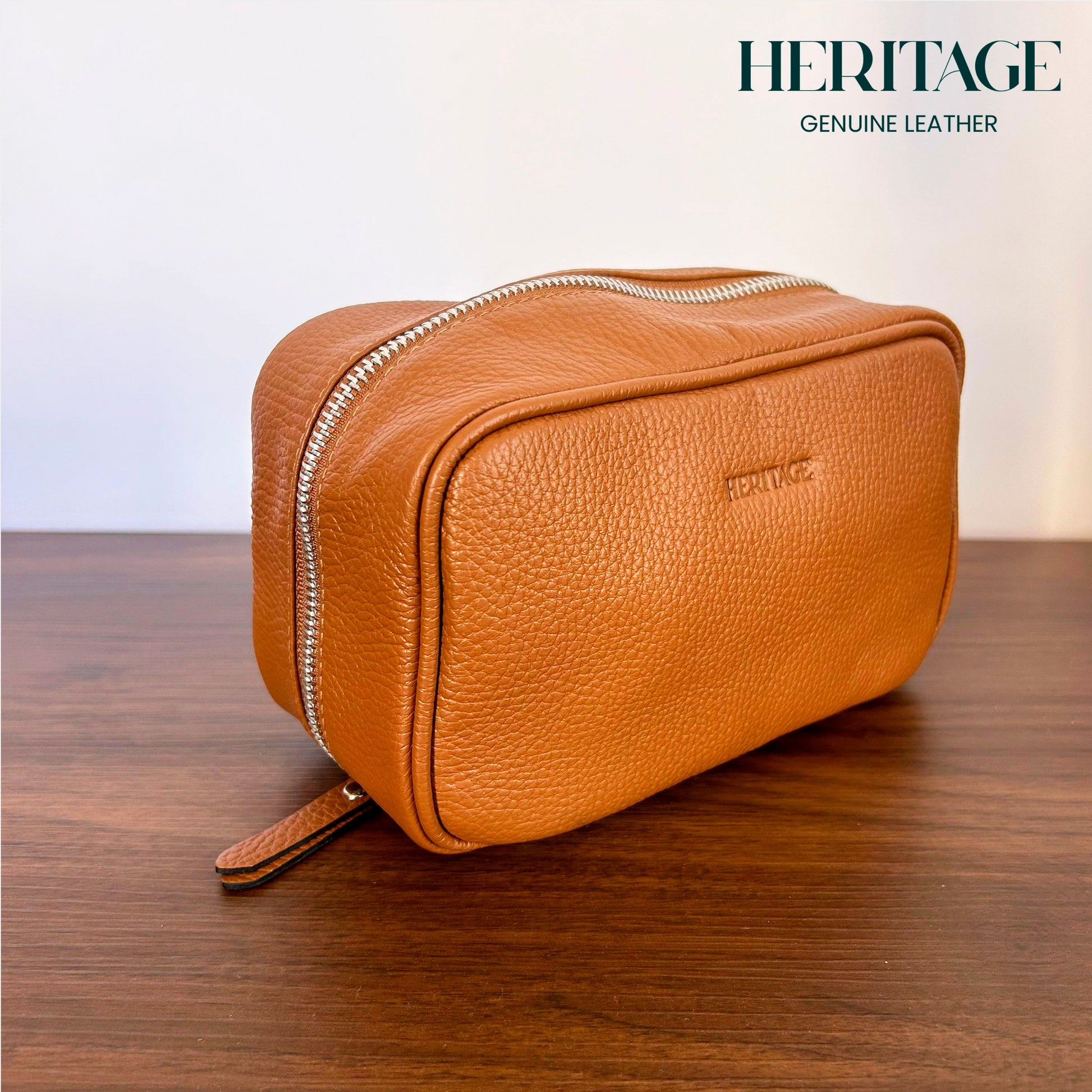 Para tus lociones y maquillaje, nuestro Neceser Cosmético en Cuero Granulado Whiskey Heritage te permite una organización sin esfuerzo mientras viajas o en el día a día, liberando los bolsillos de la billetera y el celular. Elaborado con cuero de primera calidad.