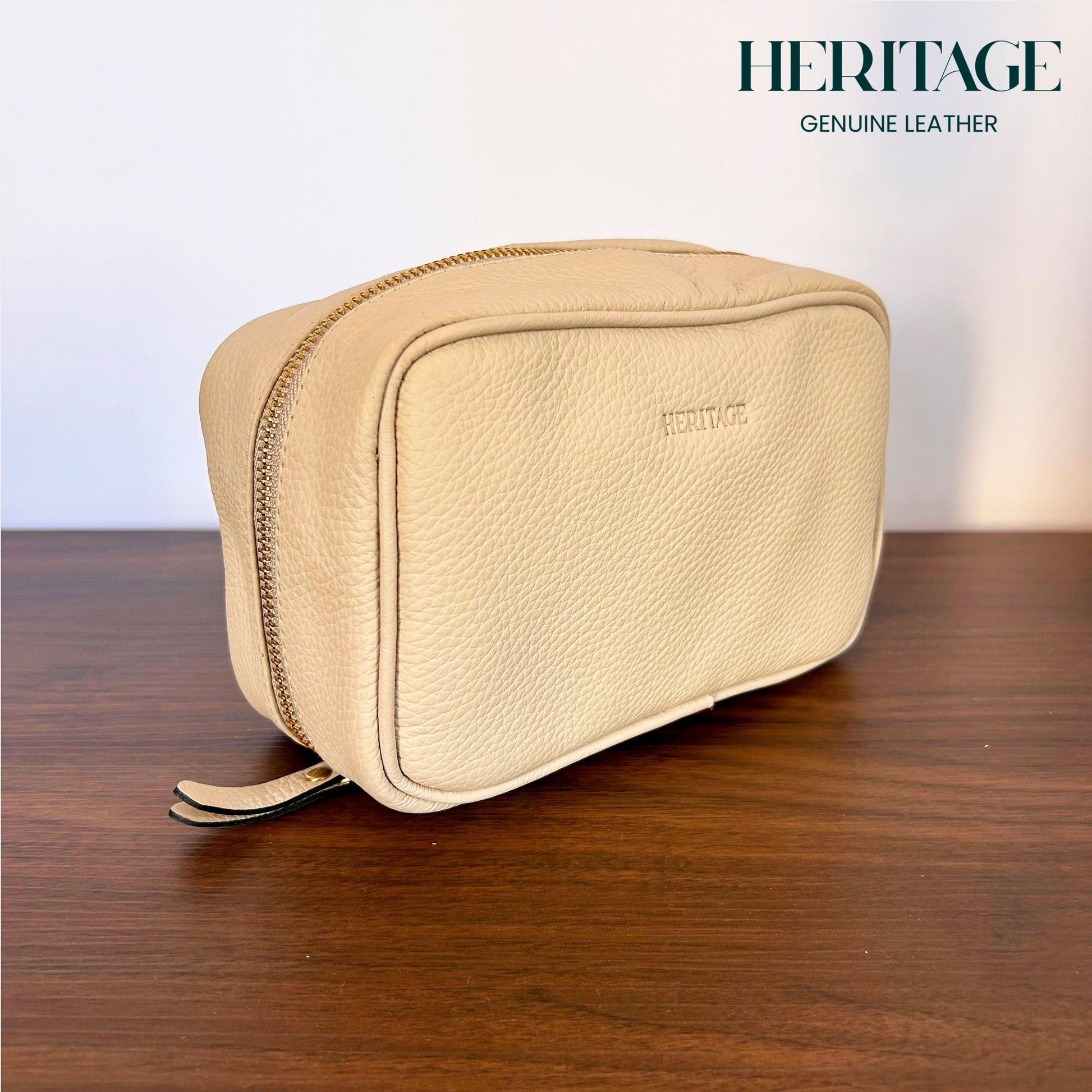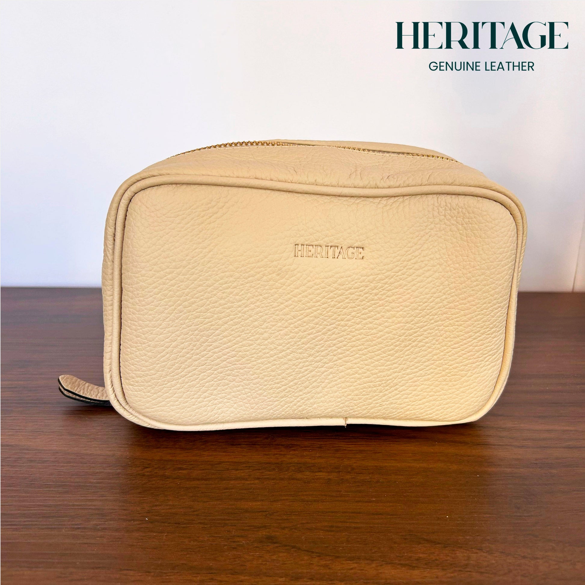 Neceser Cosmético en Cuero Granulado Arena Heritage