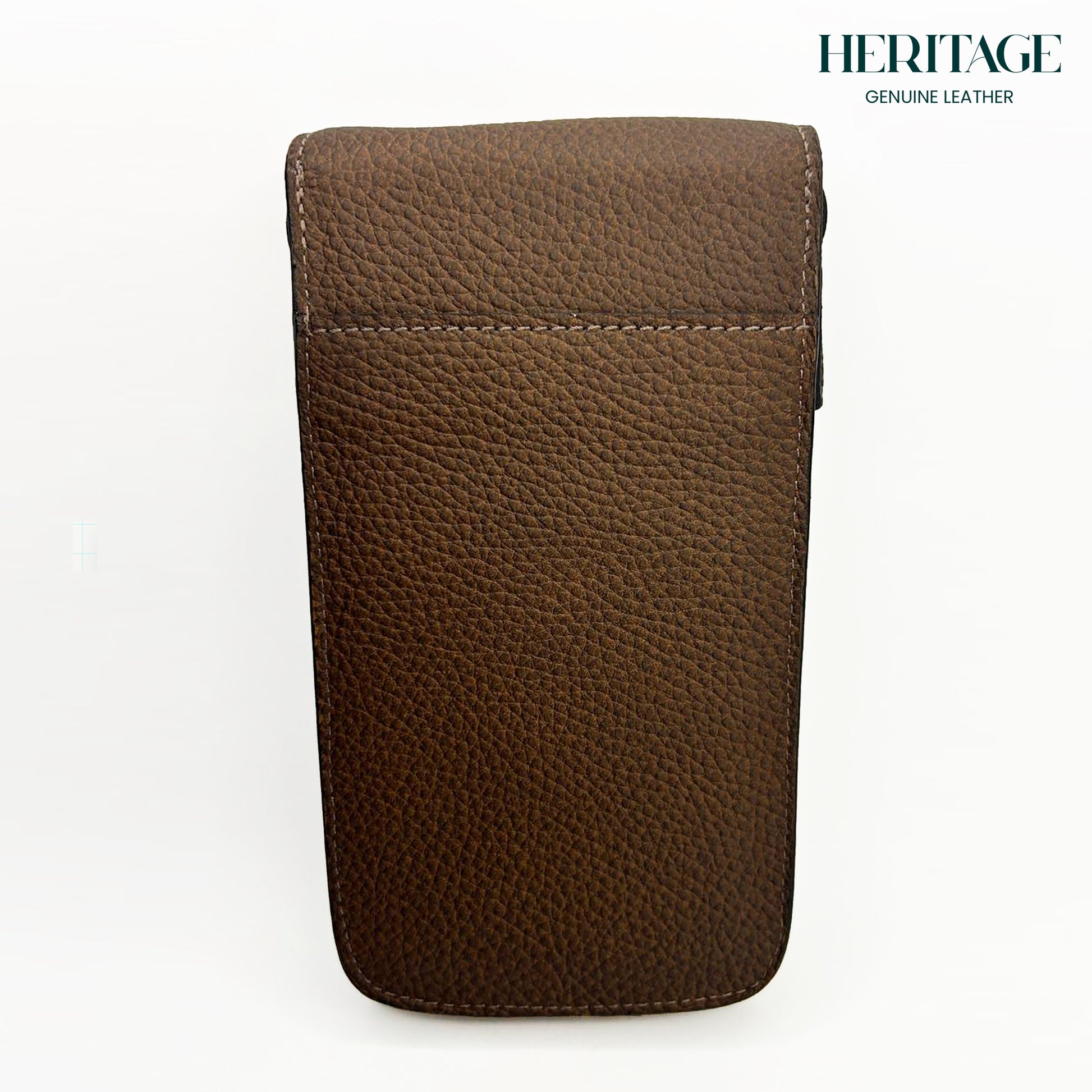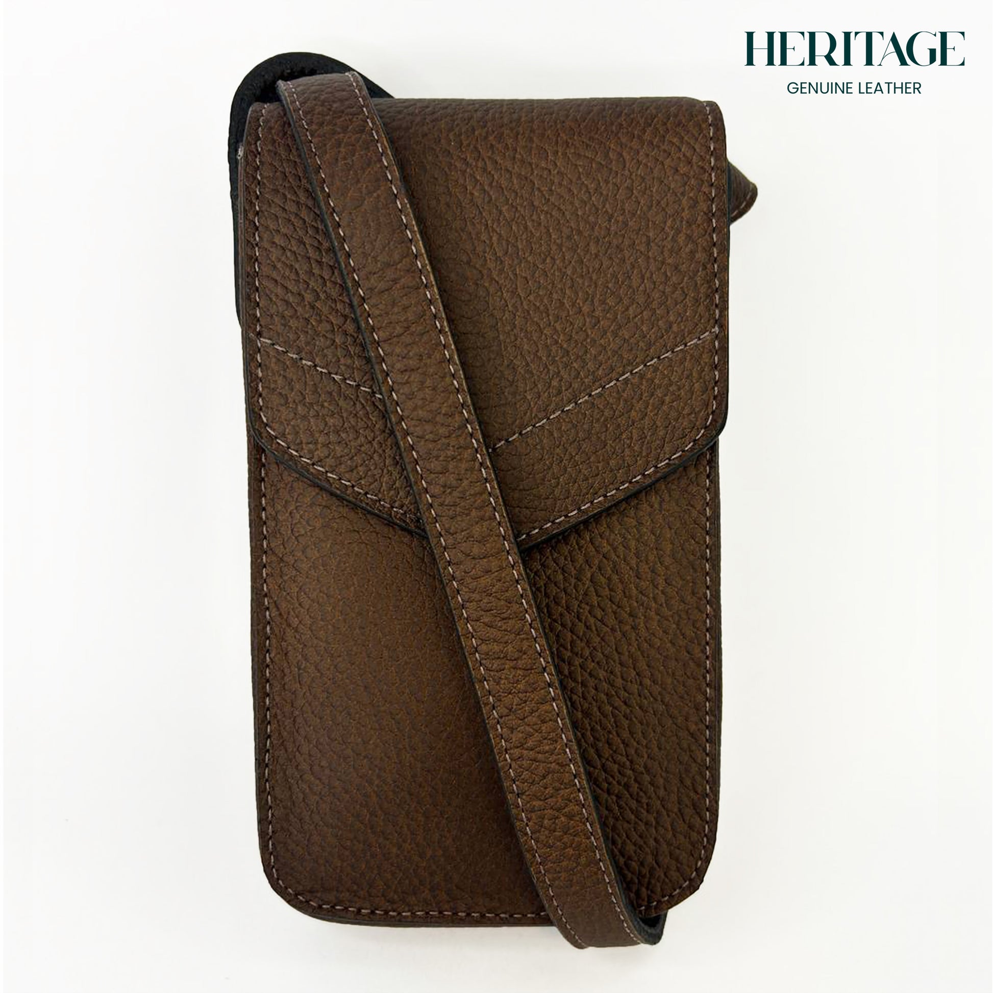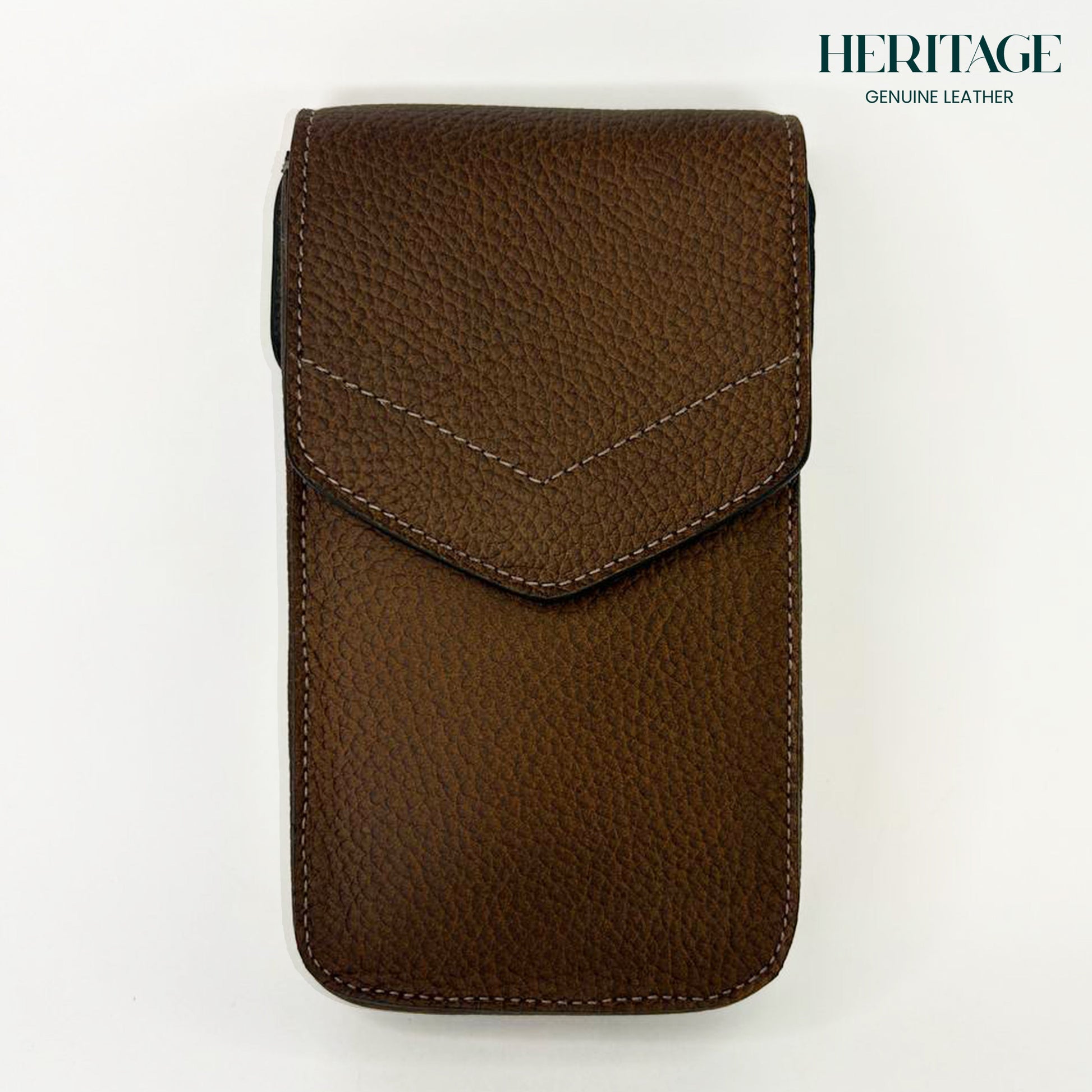 Explora nuestro Portacelular en Cuero Granulado Café Heritage que mantiene tus objetos esenciales organizados. Tiene un compartimento para teléfono y un bolsillo posterior de fácil acceso en un diseño elegante y funcional, manten siempre a tu alcance tus esenciales